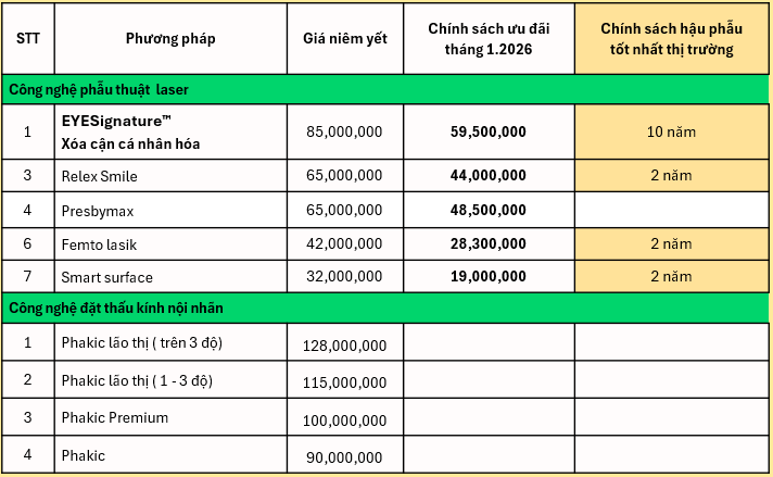 - Ưu đãi 1 triệu khi lựa chọn công nghệ Phakic
